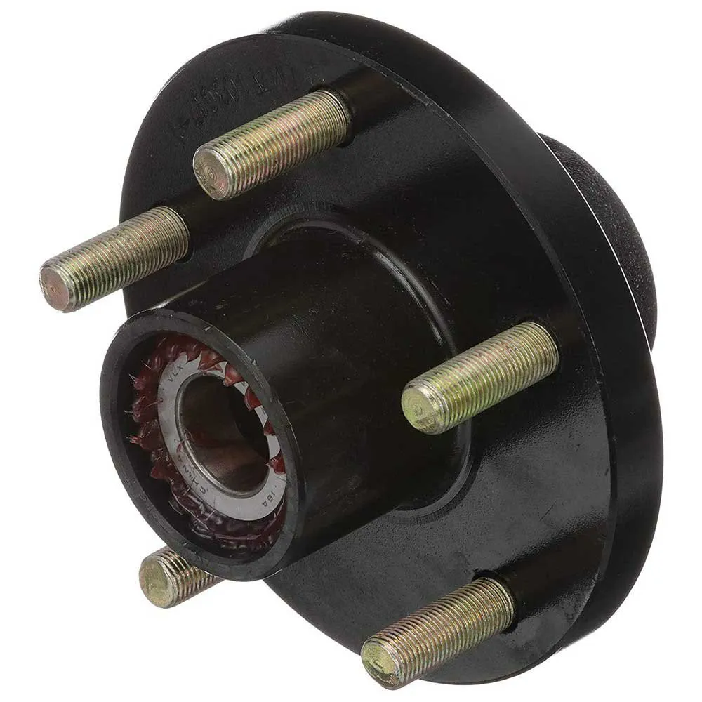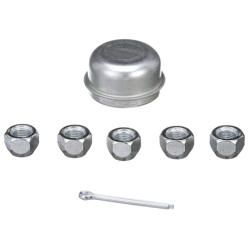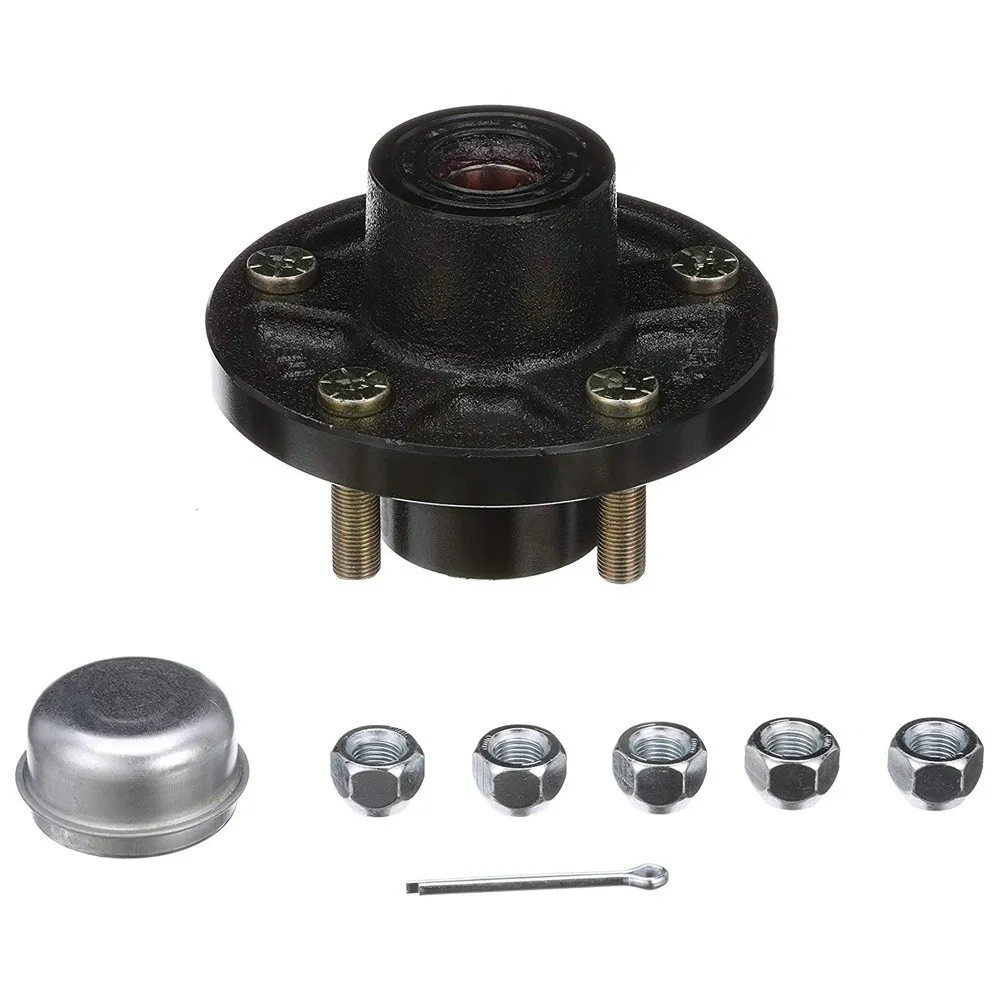One piece cast hubs complete with pregreased bearings seals dust caps cotter pin and lug nuts.