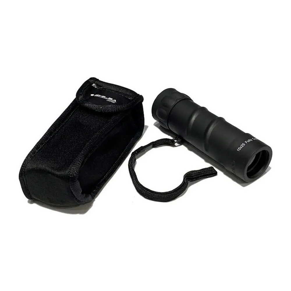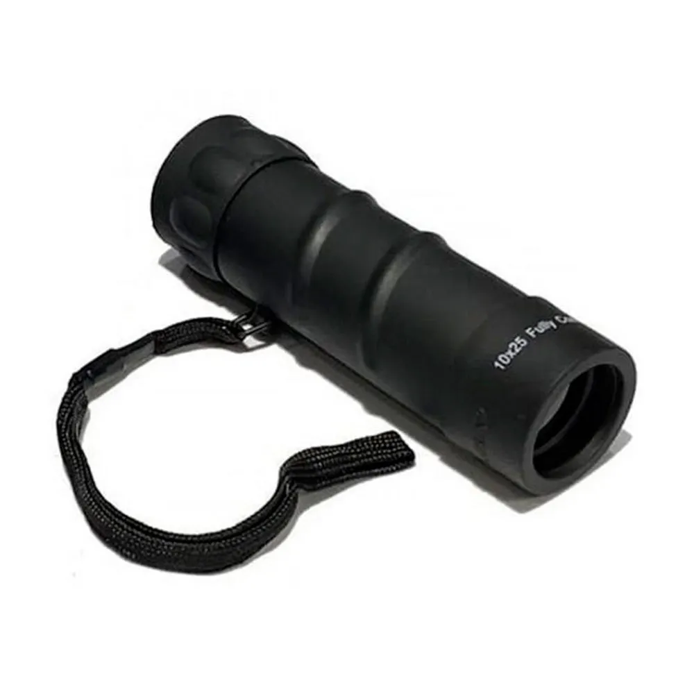 Compact, easy-to-use monocular with 25 mm objective lens and 10x magnification.