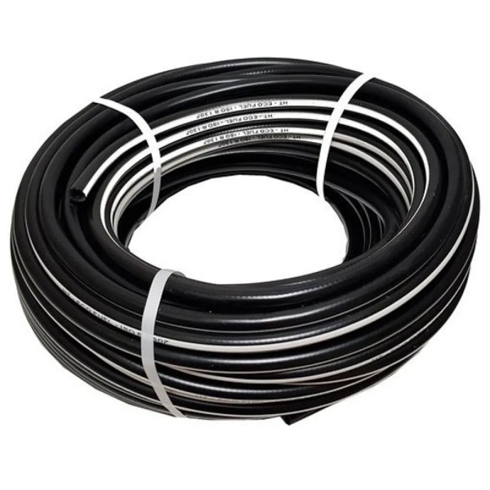 PVC hose suitable for loading of fuels with aromatic content until 40% Tube: transparent smooth PVC fuel resistant Reinforcement: high strenght syntethic textile fabrics Cover: mat black special plastic compound – oils and weathering resistant Surface: smooth extruded Marking: ink H.T. – ECO FUEL RESISTANT – ISO R 1307