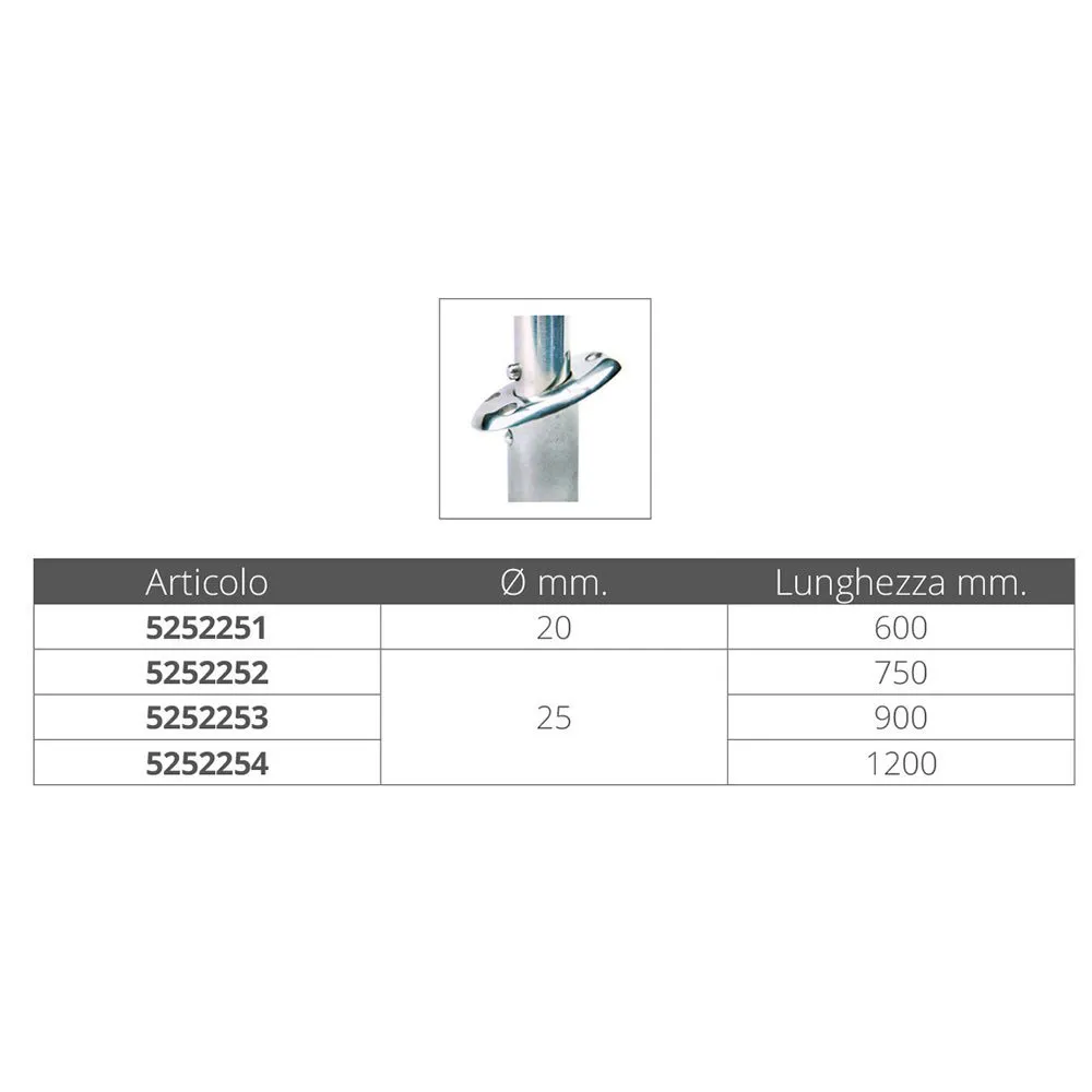 Flag pole in AISI 316 stainless steel with a conic section, fixing with bayonet coupling in the recessed support (item 5252272-3).