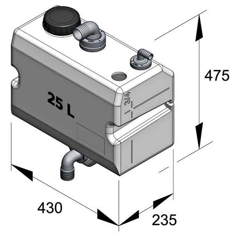 Vetus bulkhead mounting tank for fitting in confined spaces – or where an underfloor situation is impractical. The tank has a capacity of 25 litres and is made of seamless, odour impermeable polythene. The contents level can be seen from outside. Suitable for both water. It comes complete with the following components installed Angled inlet connectors can be ordered separately. One hole has already been provided, to connect the inlet fitting. The tank is suitable for mounting under the side decks, above the waterline. When permitted, the contents of the tank can be gravity discharged at sea, without the assistance of a pump. Simply opening the sea cock will empty the tank. Provided with ISO 8099 identification.